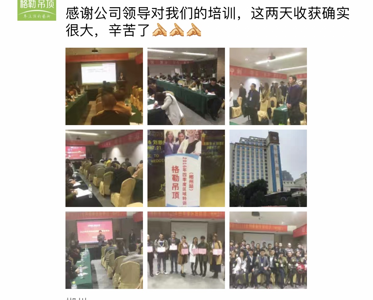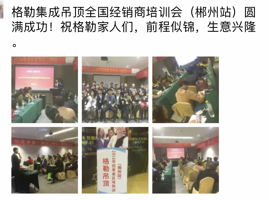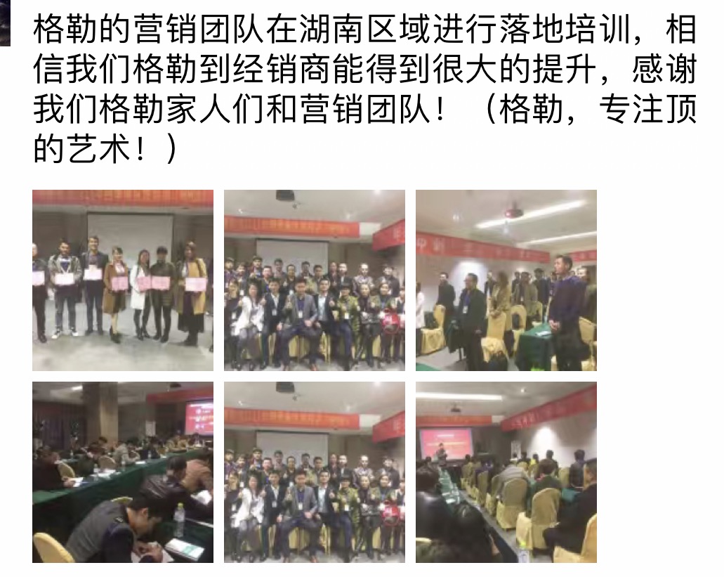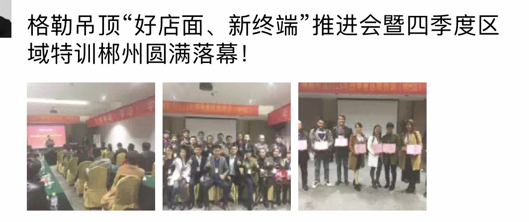 2016年格勒集成吊頂“好店面、新終端”推進會暨四季度區(qū)域特訓會重慶站剛剛落幕, 11月15號,第四站在鐘靈毓秀的福城湖南郴州今悅大酒店拉開序幕,來自湖南、湖北、廣西等地區(qū)的格勒家人參加了本次培訓會,針對公司產(chǎn)品、市場營銷、互聯(lián)網(wǎng)營銷等進行了系統(tǒng)的學習。