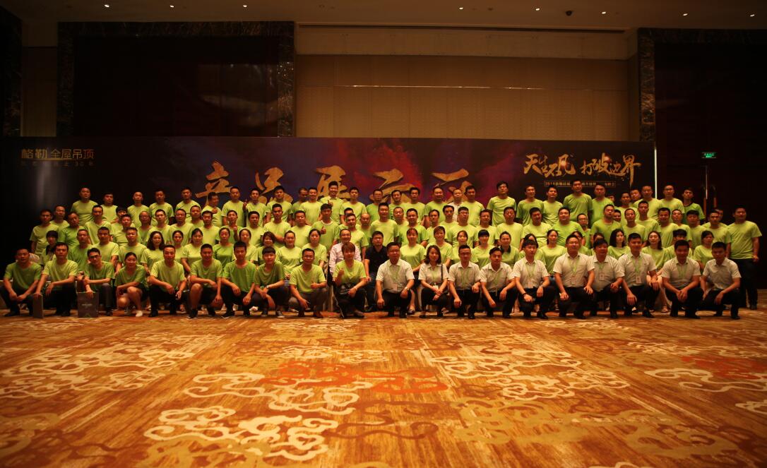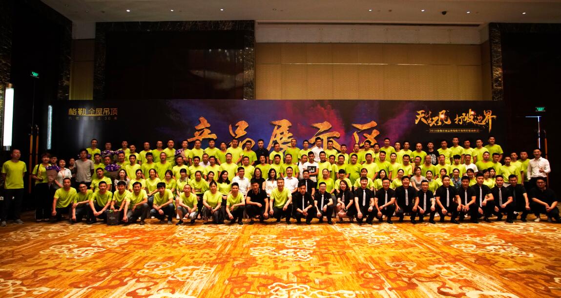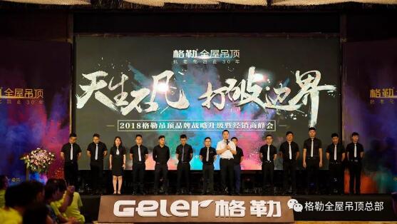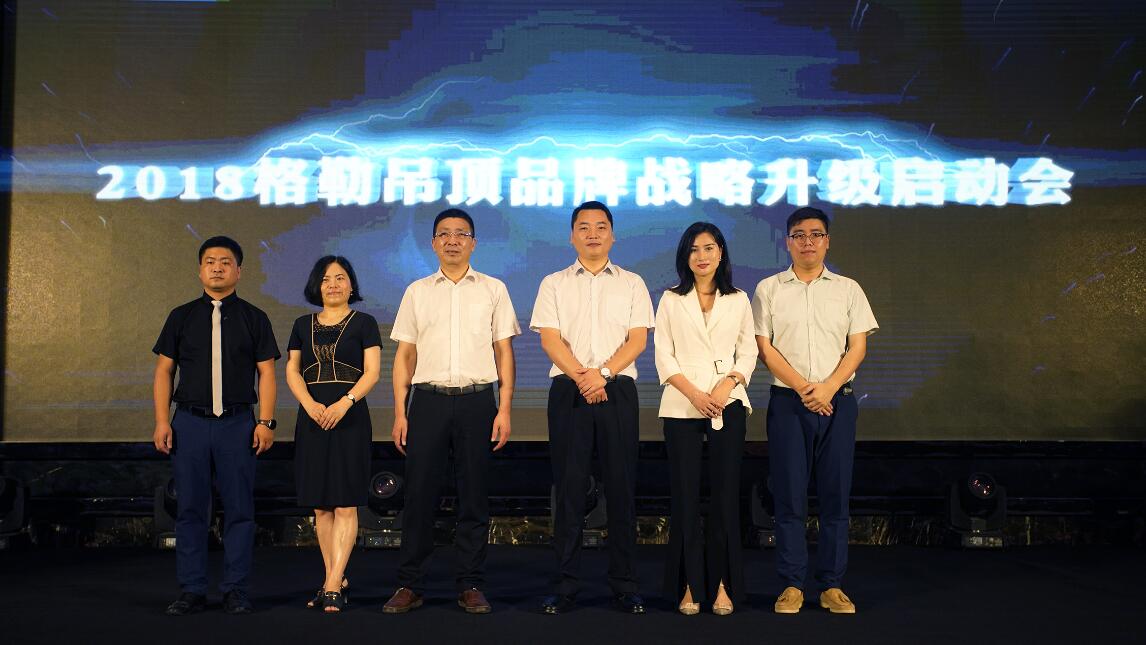 在全體經(jīng)銷商家人的見證下,各位領(lǐng)導(dǎo)上臺進行啟動儀式,2018格勒吊頂品牌戰(zhàn)略升級正式啟動,開啟了全新的品牌戰(zhàn)略。