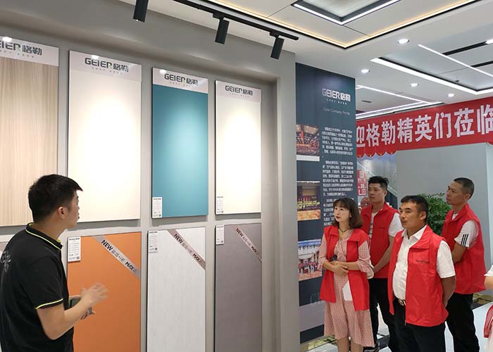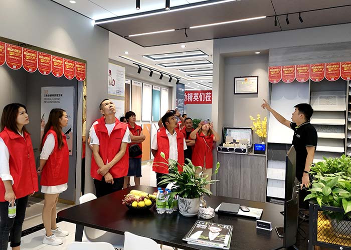 上午,在市場(chǎng)部富經(jīng)理的帶領(lǐng)下,各地經(jīng)銷(xiāo)商家人們參觀了格勒鎮(zhèn)雄專(zhuān)賣(mài)店。鎮(zhèn)雄店是一家頂墻一體店,也是格勒最新的SI形象店。